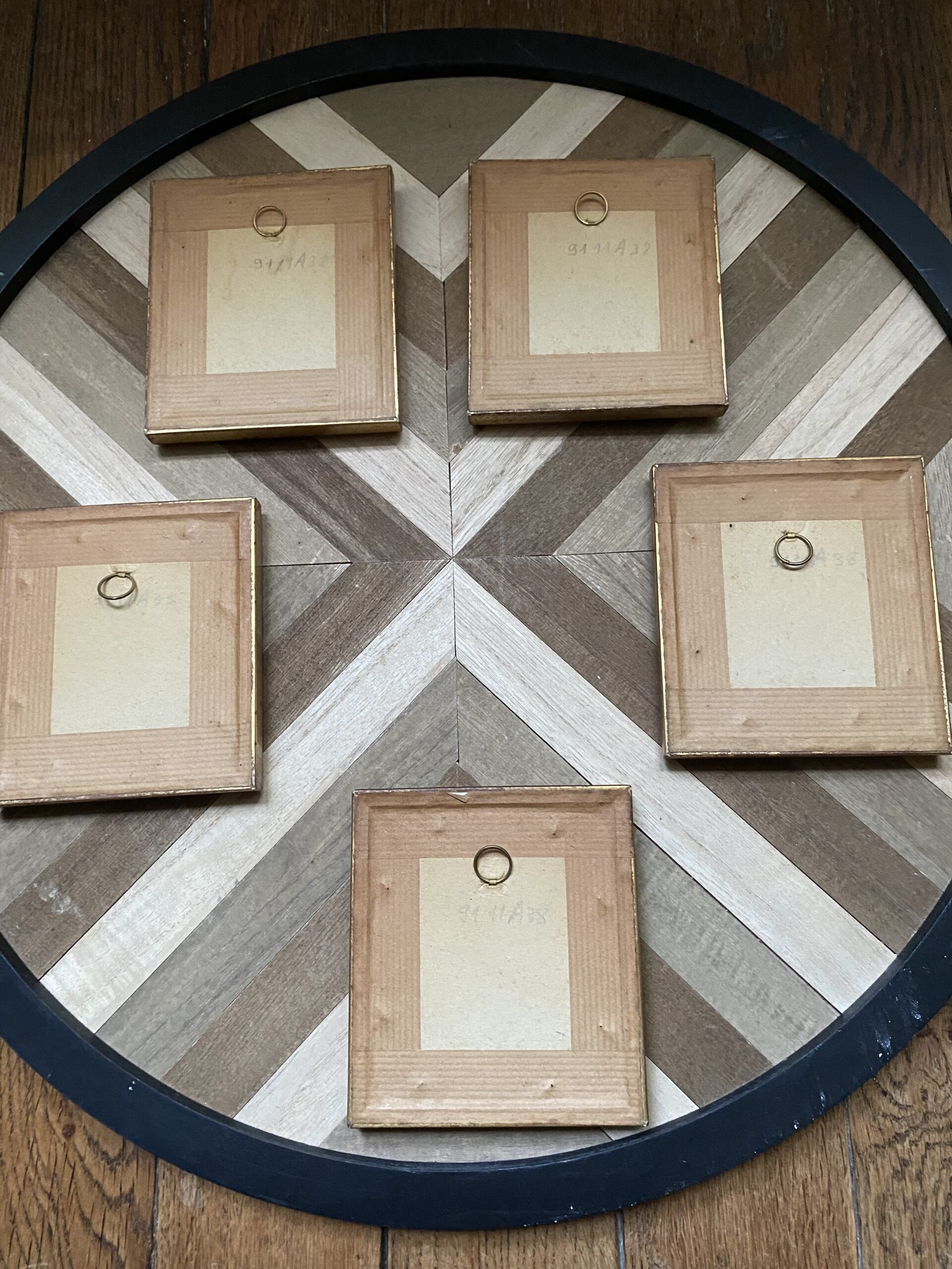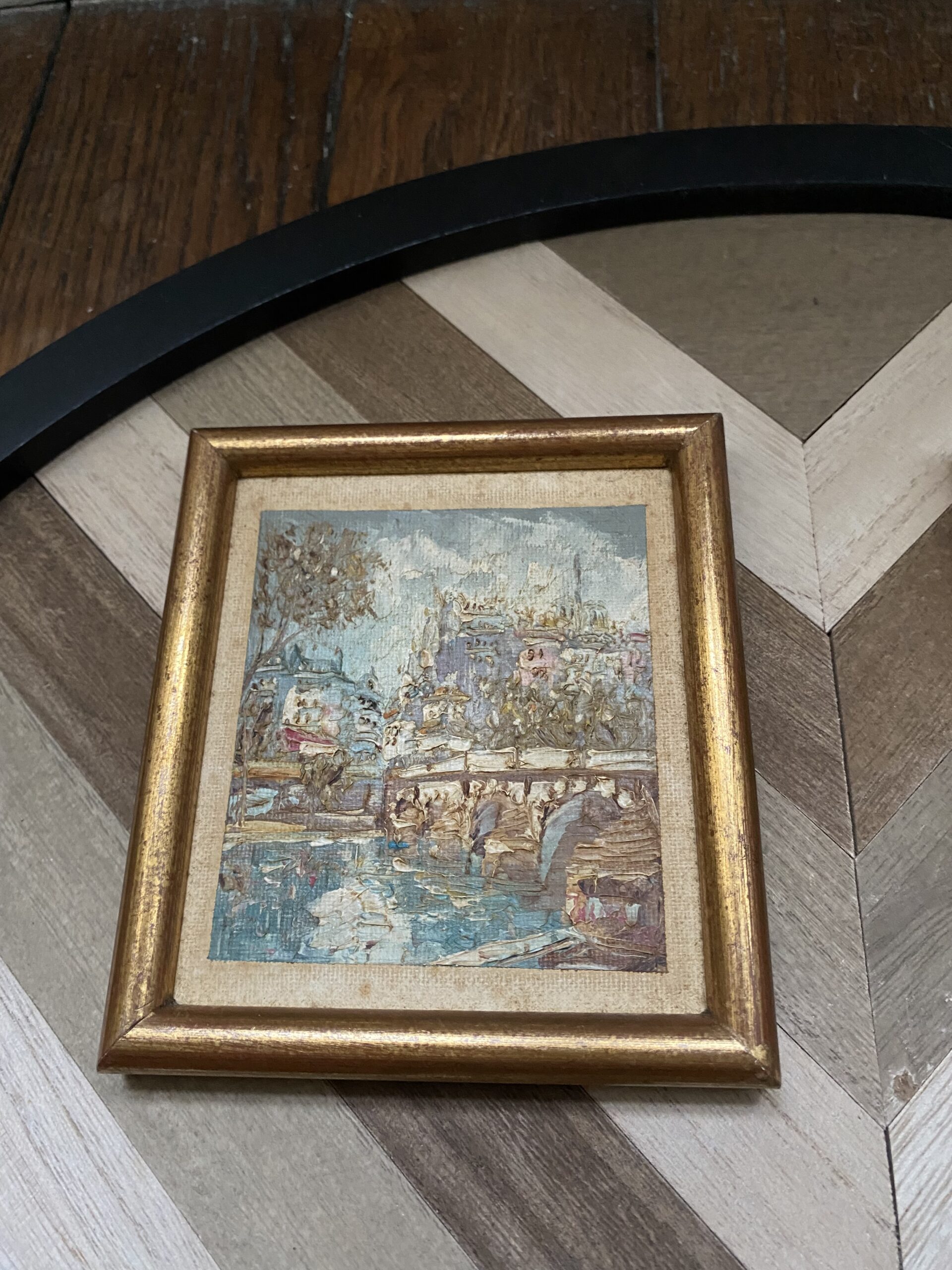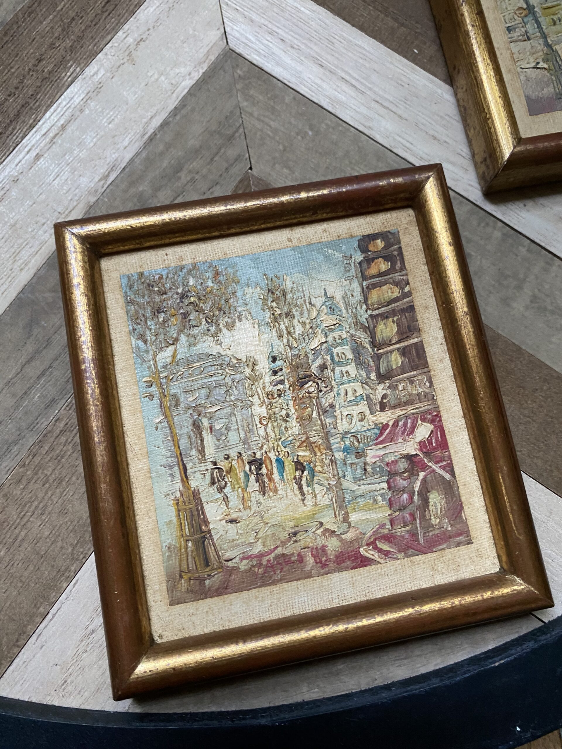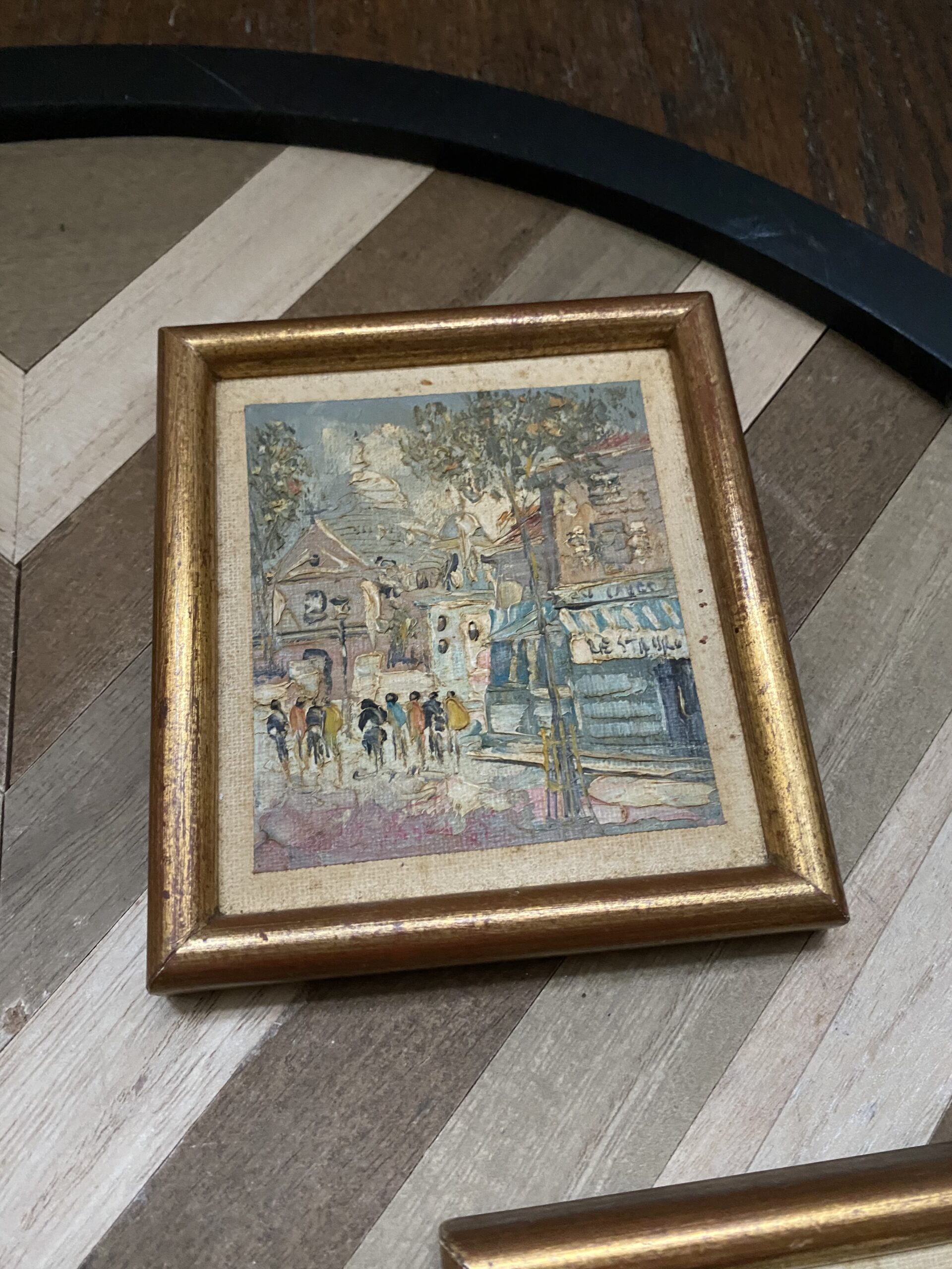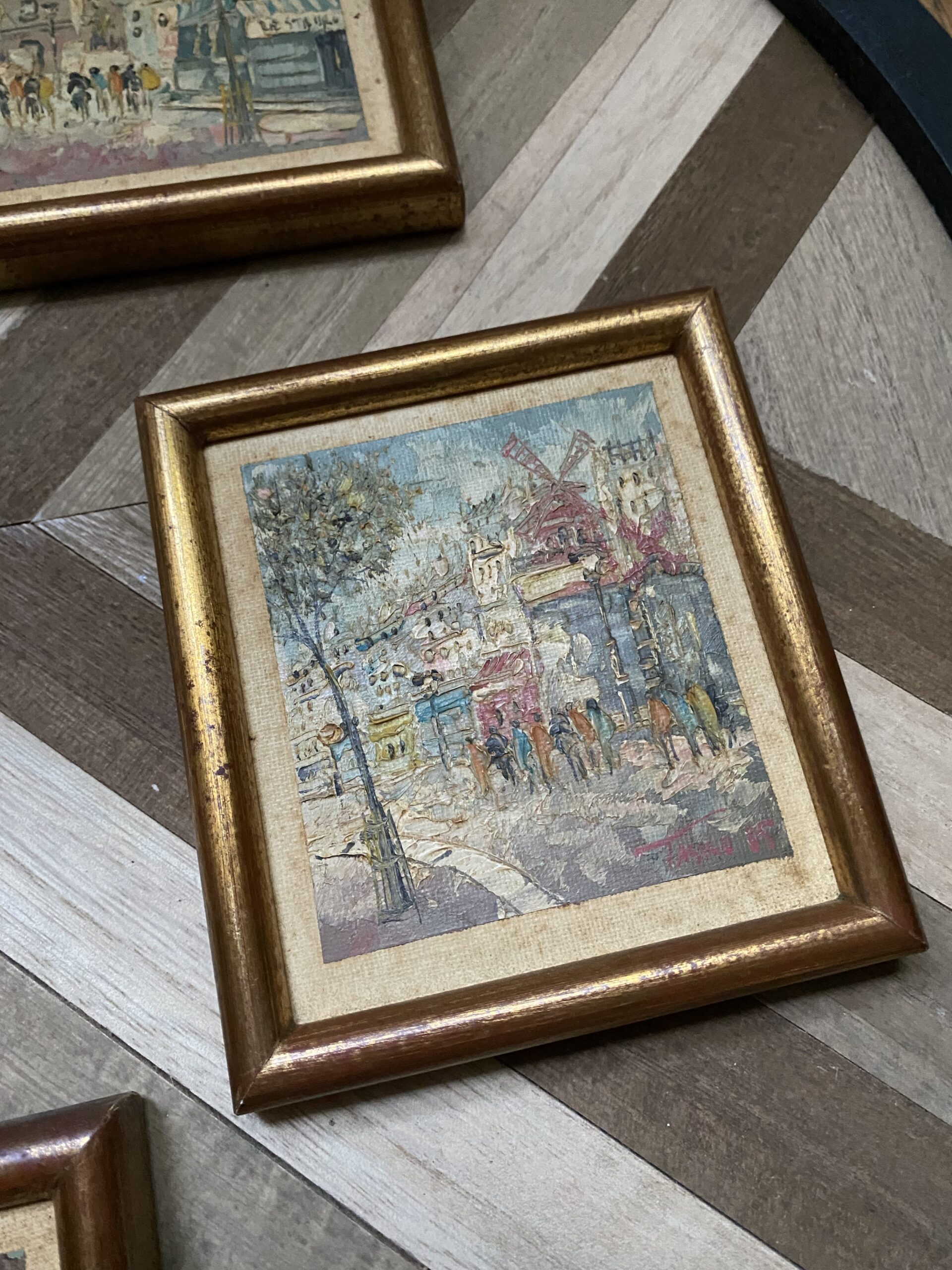5 minis tableaux peints de Paris de 12×10,5cm signés TASKO (?) 1985, traces de passé voir photos, ensemble mignon et très décoratif