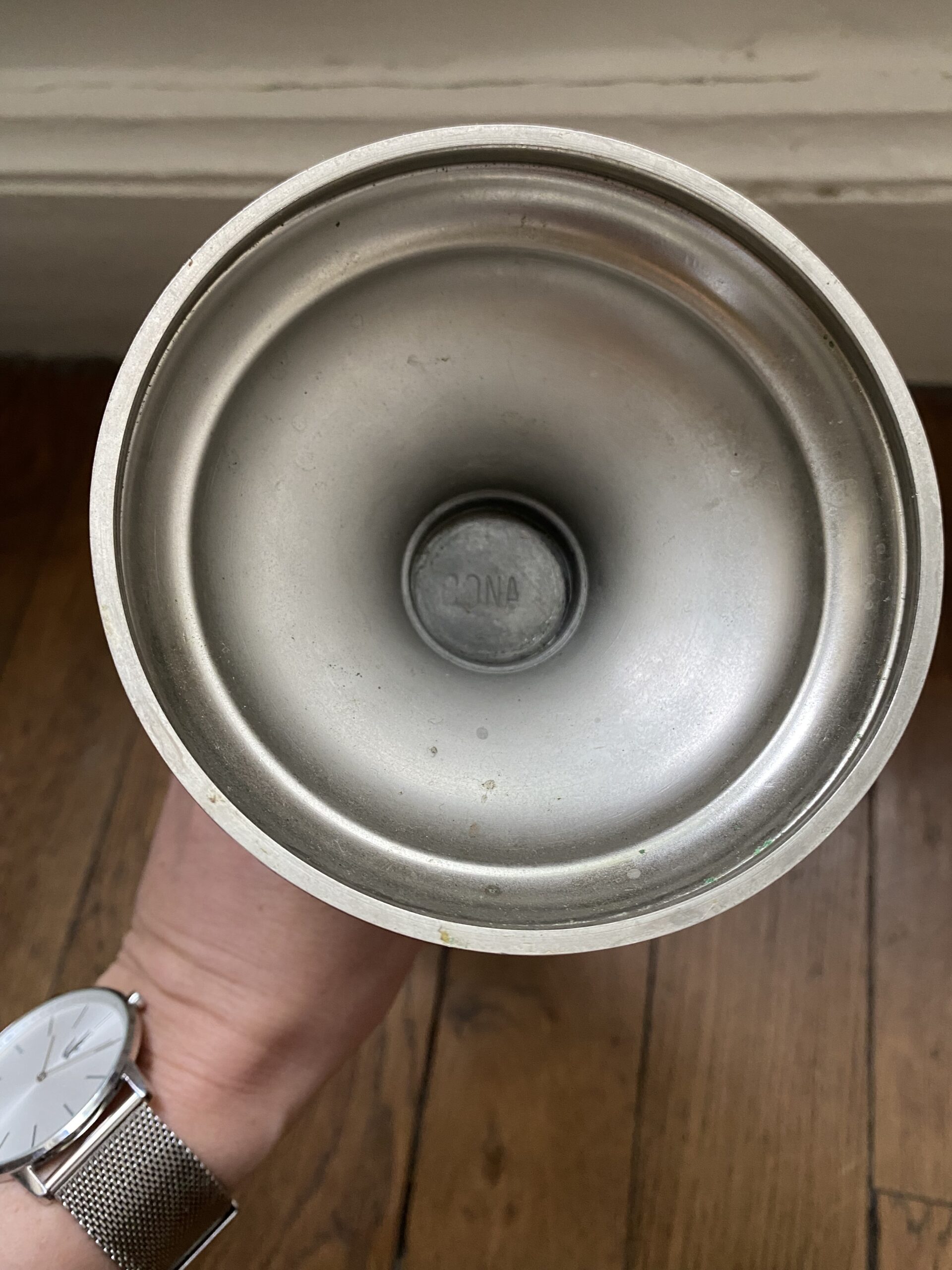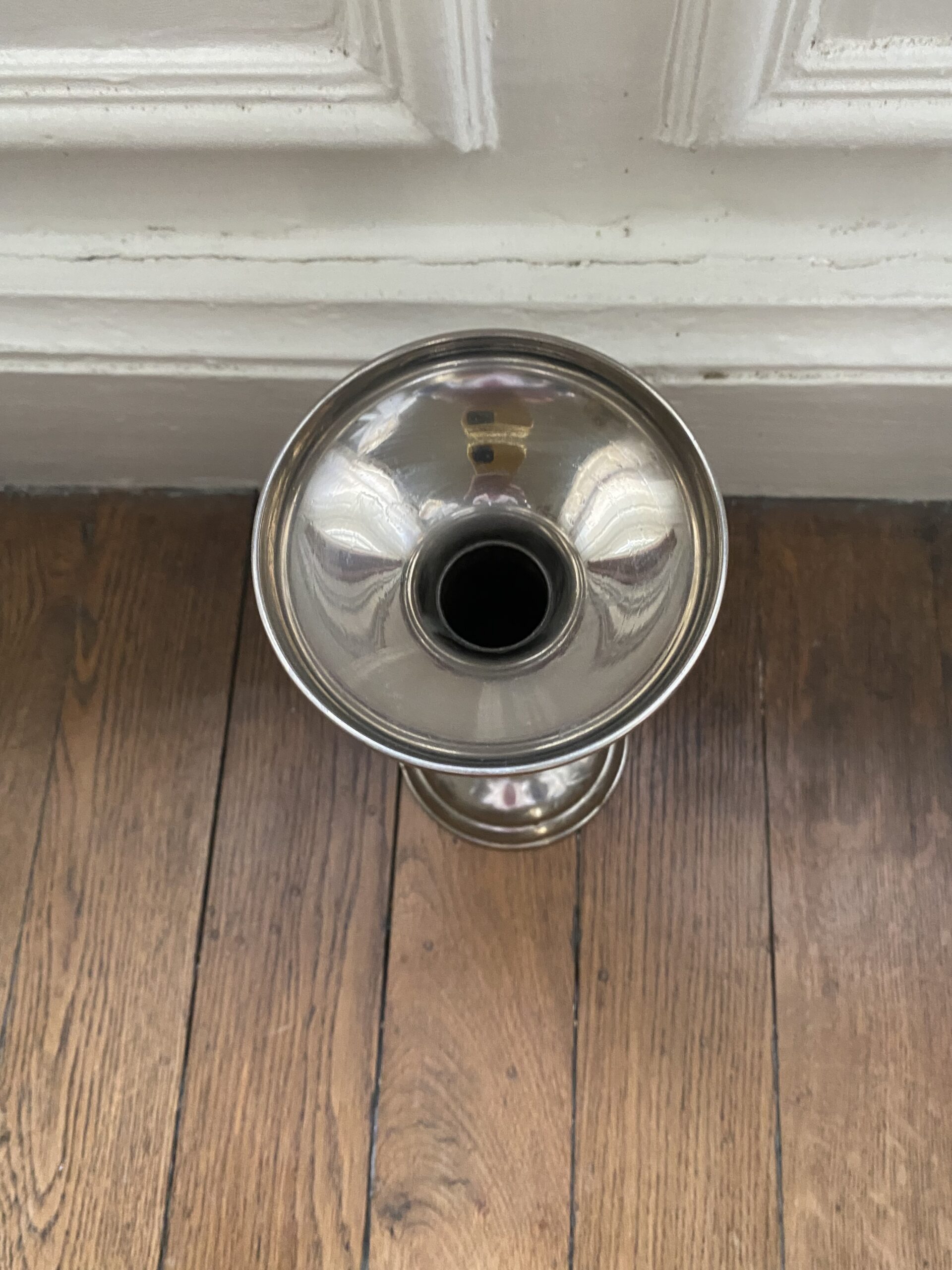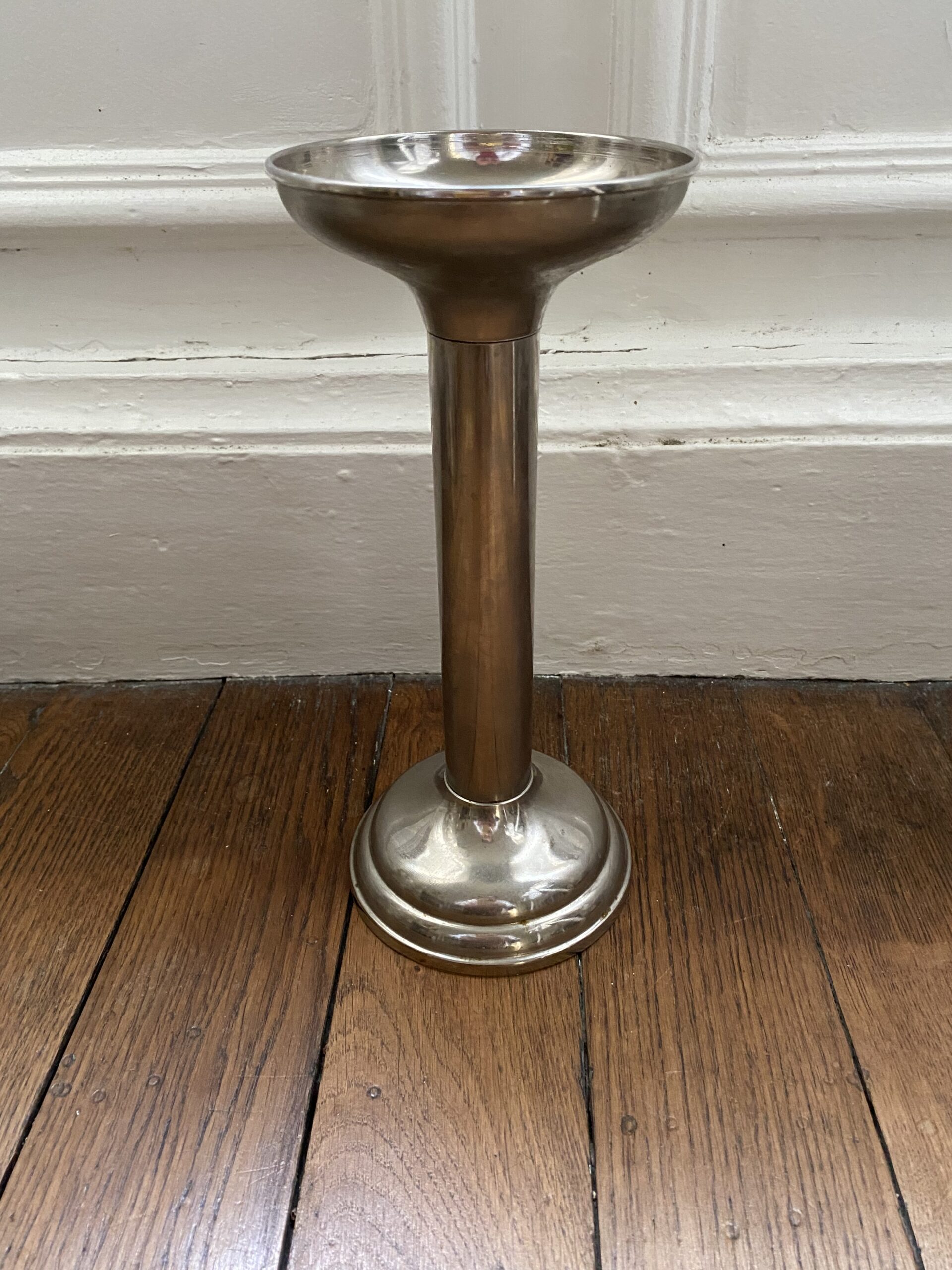 Bougeoir vintage en métal argenté, hauteur 25,5cm, diamètre 11cm, objet vintage avec traces de passé et vécu