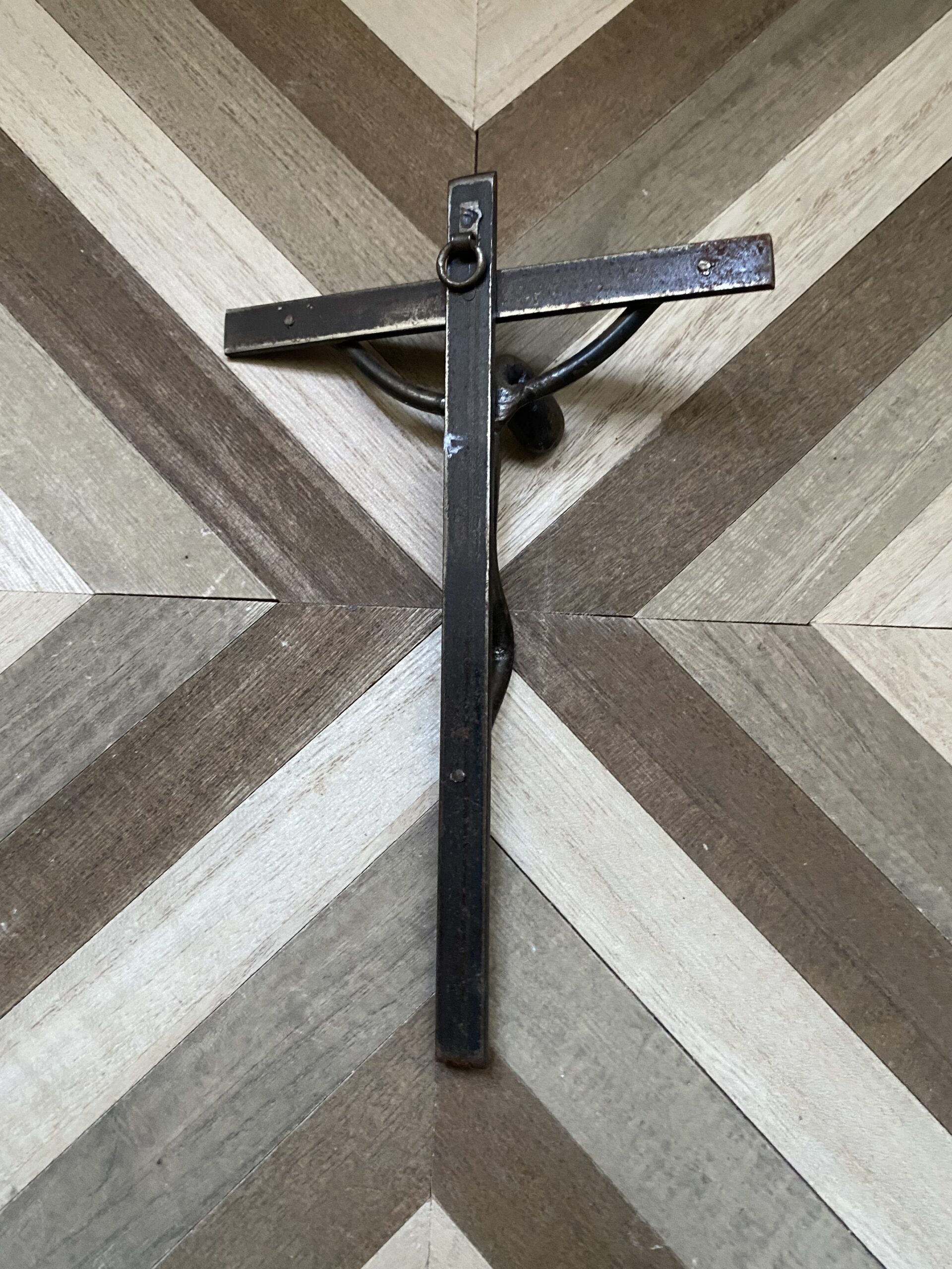Cette croix sobre et intemporelle incarne la spiritualité dans sa forme la plus épurée. Réalisée en métal légèrement patiné par le temps, elle témoigne d’une foi discrète, élégante et profonde. Sa silhouette minimaliste, sans ornement superflu, évoque l’essentiel du symbole chrétien.