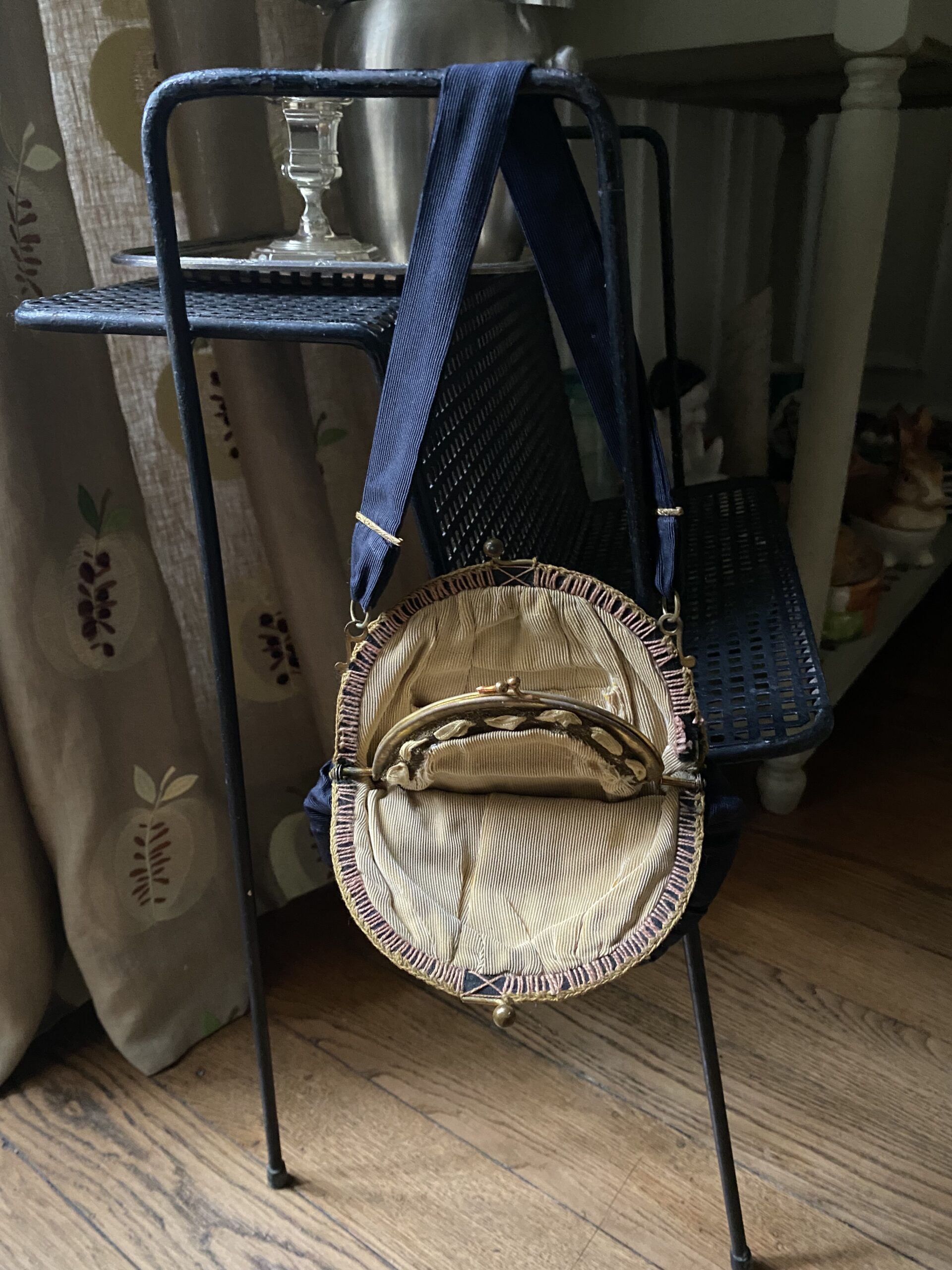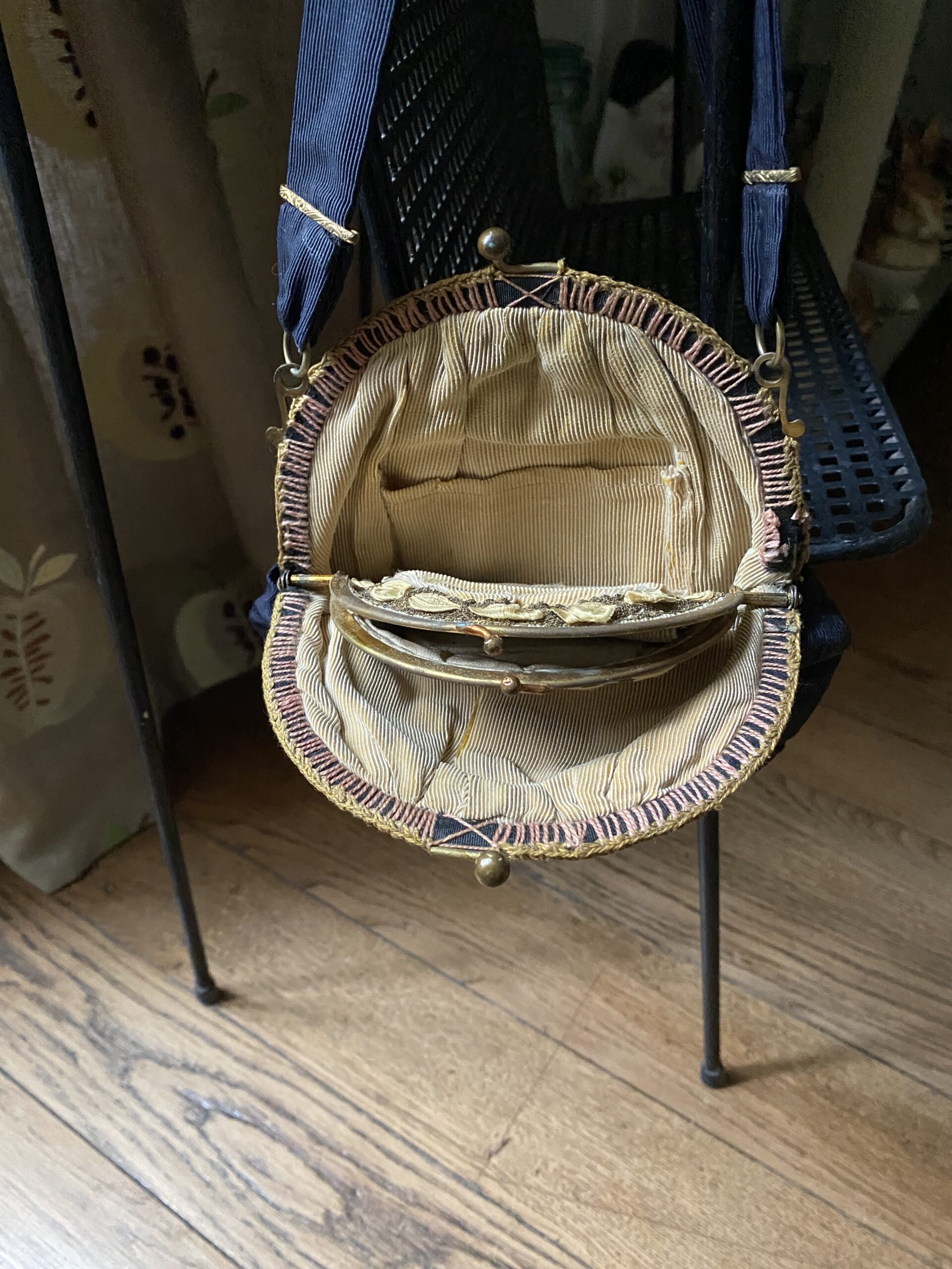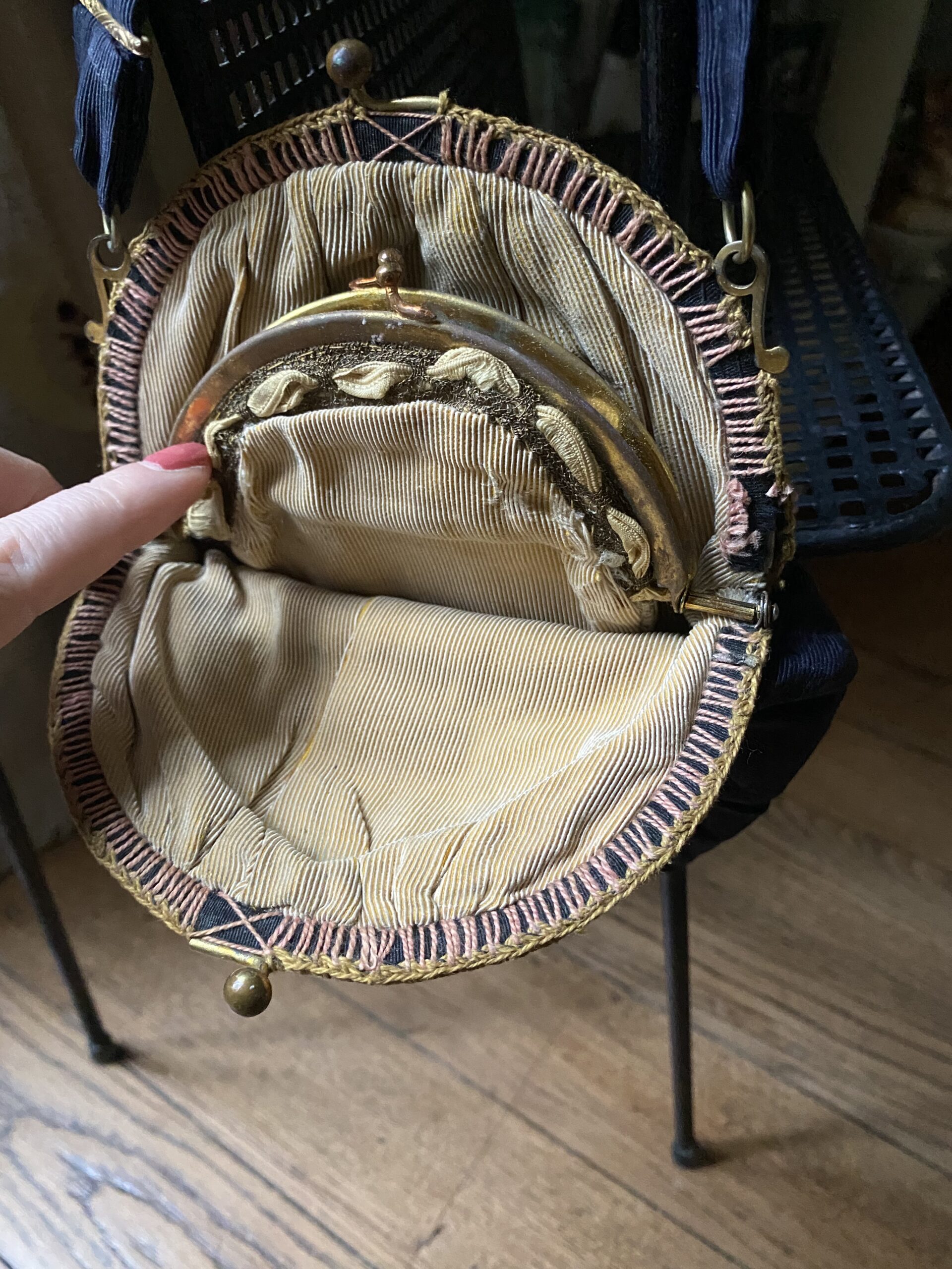 Sac à main ancien en soie brodée – Porte-monnaie intégré