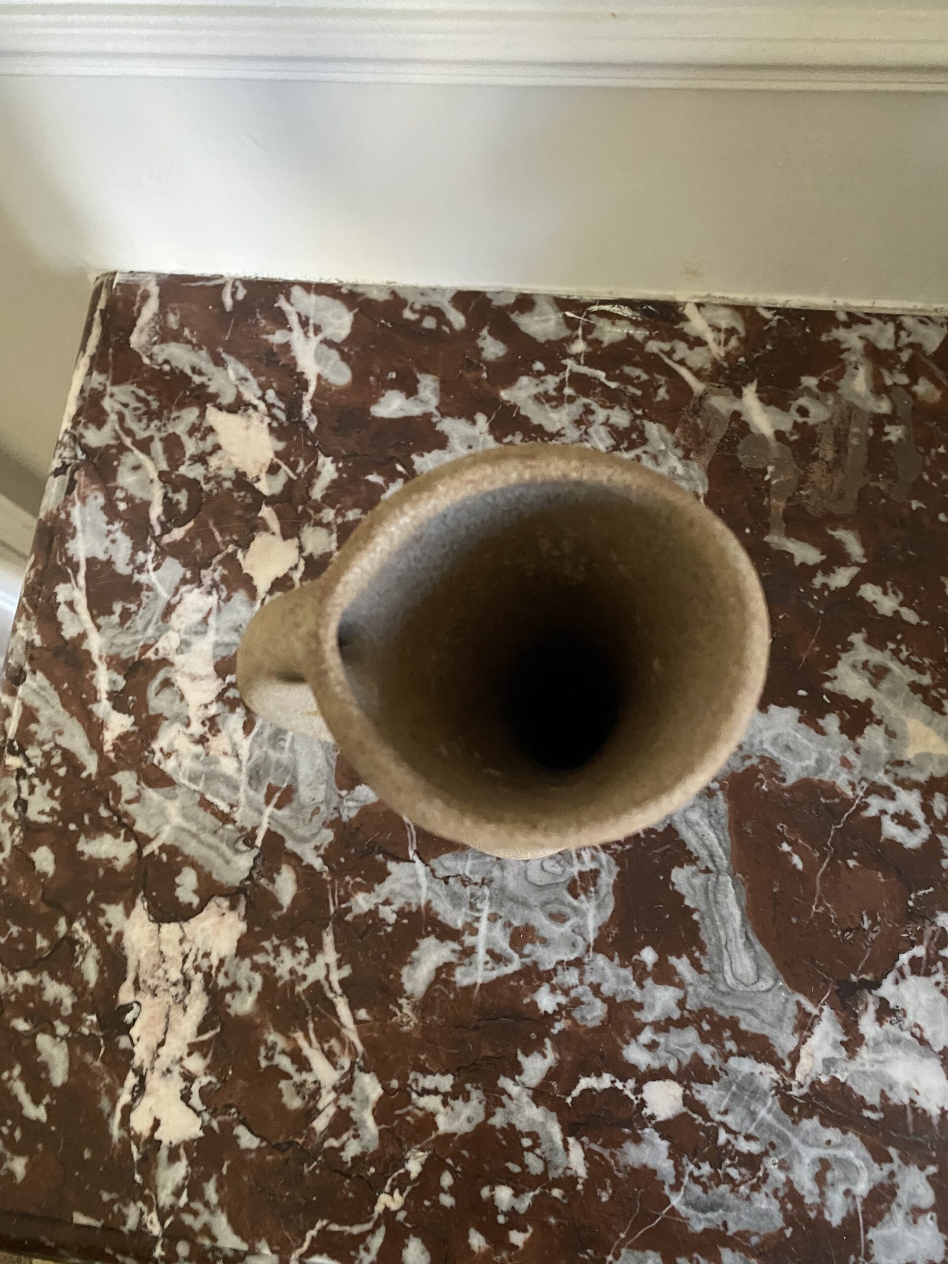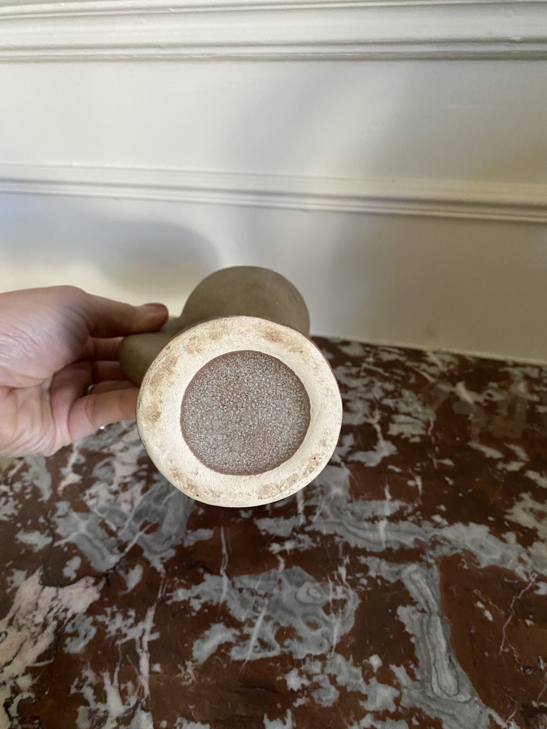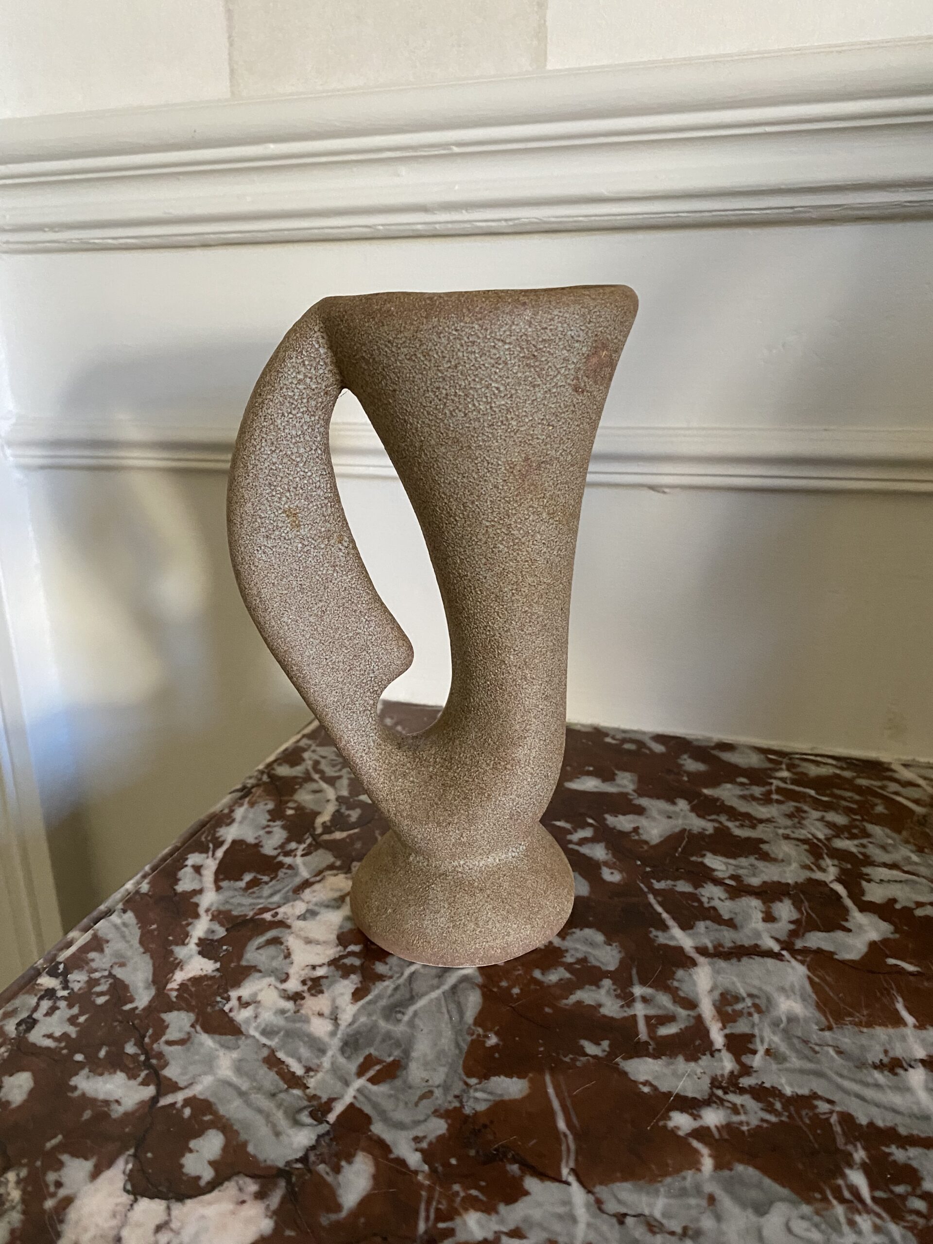 Vase/pichet forme géométrique vintage style VALLAURIS, non estampillé, en grès, hauteur 17cm, profondeur 10cm, largeur 7cm, forme atypique très déco, objet vintage avec traces de passé et vécu